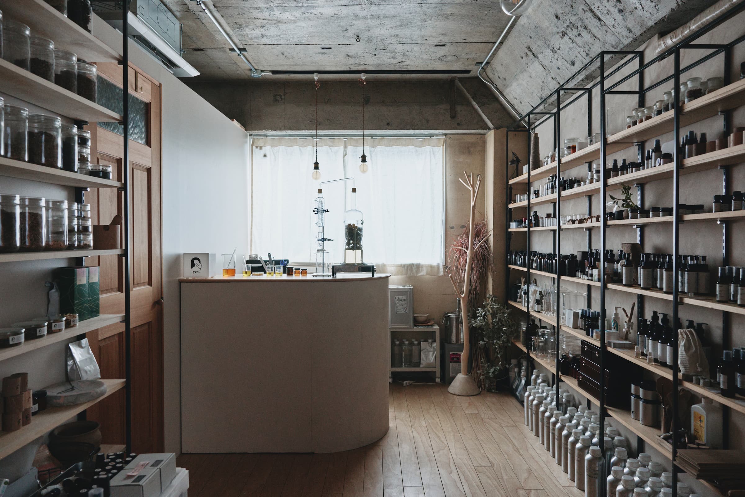 He started "fragrance yes." in 2014. He currently has a lab in Yoyogi Hachiman where he distills plants, blends perfumes, and provides fragrance counseling and aroma treatments.
